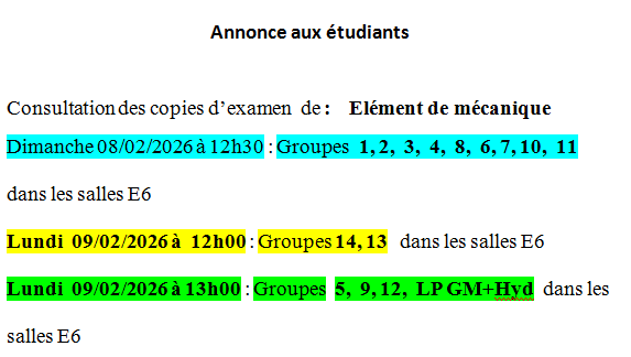 Avis aux étudiants – 1ère Année ST (Groupe 9)