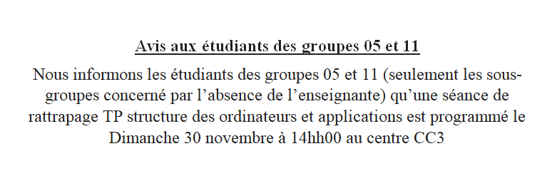 Séance de rattrapage TP Structure des Ordinateurs et Applications groupe 05 et 11