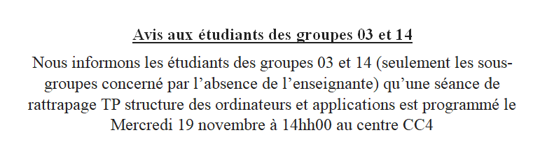Séance de rattrapage TP Structure des Ordinateurs et Applications groupe 03 et 14
