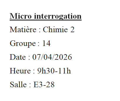 Micro interrogation pour le groupe LP/GM TD chimie 1