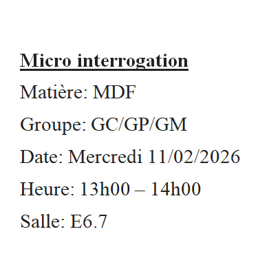 Nous informons les étudiants du groupe Automatique qu’une Micro interrogation système asservis est programmé
