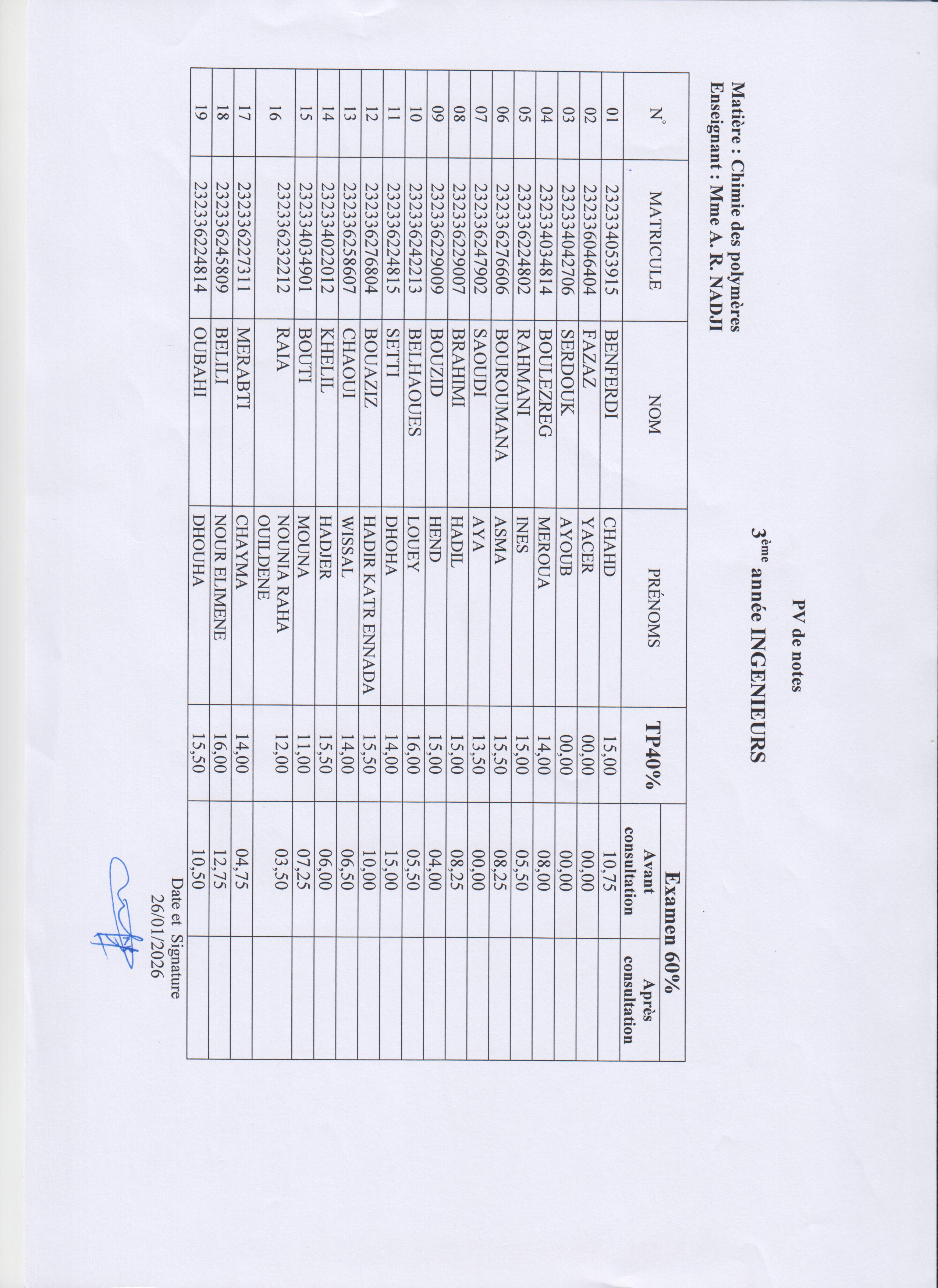 Affichage des-Notes- Examen + CC /Sem1-GP-2026