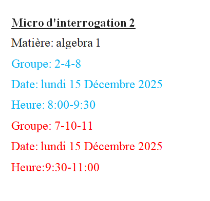 Micro interrogation Algèbre pour les groupes suivant: 02 - 04 - 07 - 08 - 10 -11