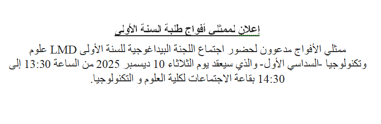 اعلان لطلبة السنة الأولى علوم وتكنولوجيا طور ليسانس: