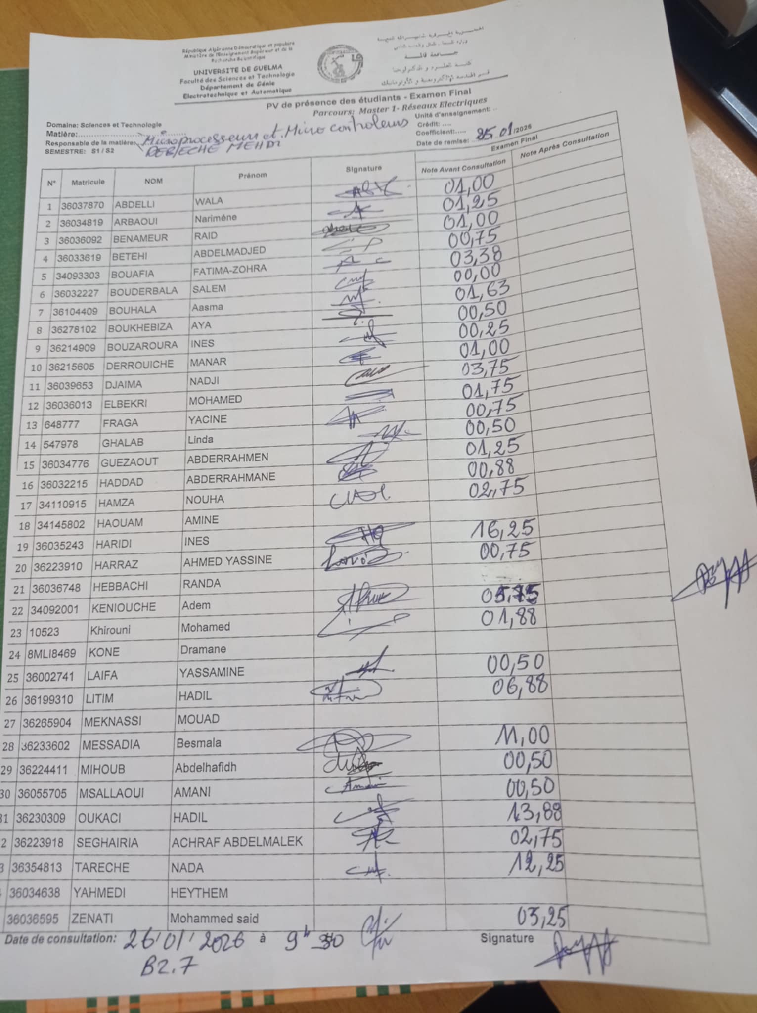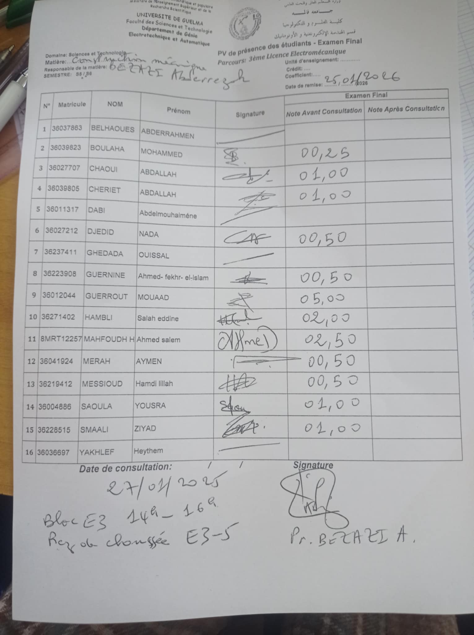 إلــى جميـــع طلبـــة الماستـــــر 2 : Réseaux électriques . AII .Electromécanique التقــــدم لإدارة قسم الإلكتروتقنيــــة والأوتوماتيـــك