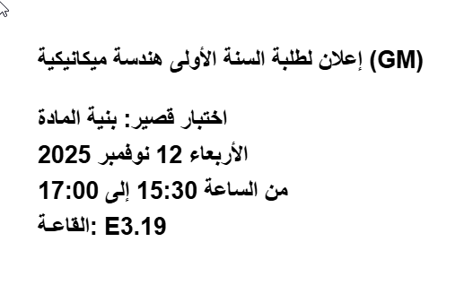 - إعلان إلى طلبة السنة الأولى مهندس هندسة مدنية 1+2 (GC1+GC2)
