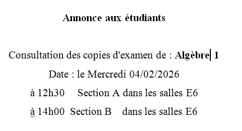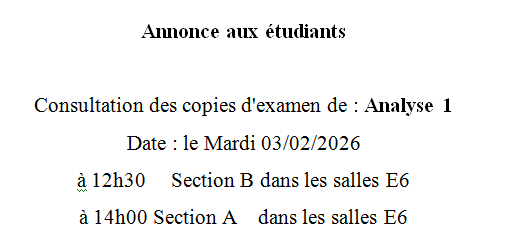 CONSULTATION DES COPIES D'EXAMEN MATHS 1