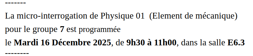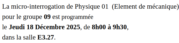 Micro-interrogation éléments de mécanique pour les étudiants des groupes 05 / 10 / 11 et 13