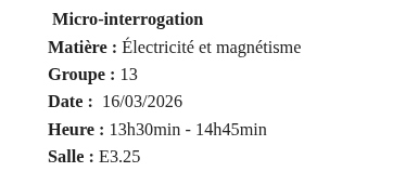 Micro interrogation : Electricité et magnétisme pour le Groupe 13