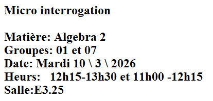 Micro interrogation : Algèbre 2 pour le Groupes 01 et 07