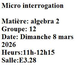 Micro interrogation : Algèbre 2 pour le Groupe 12