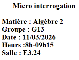 Micro interrogation : Algèbre 2 pour le Groupe 13