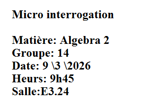 Micro interrogation : Algèbre 2 pour le Groupe 14