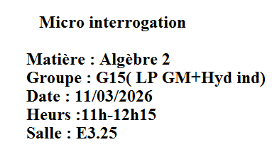 Micro interrogation : Algèbre 2 pour le Groupe 15