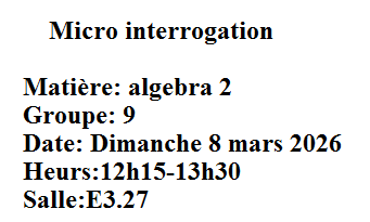 Micro interrogation : Algèbre 2 pour le Groupe 09