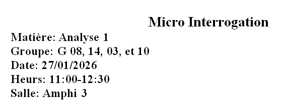 Avis aux étudiants – 1ère Année ST (Groupe 9)