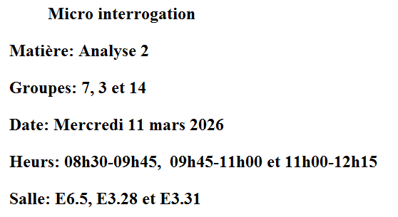 Micro interrogation: Analyse 2 pour le groupe 01