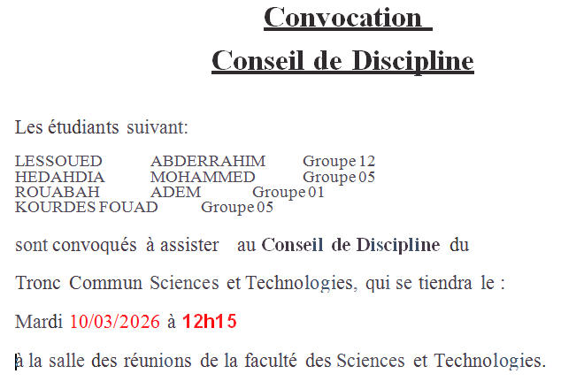 Convocation du conseil discipline pour les étudiants: