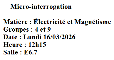Micro interrogation : Electricité et magnétisme pour le Groupes 04 et 09