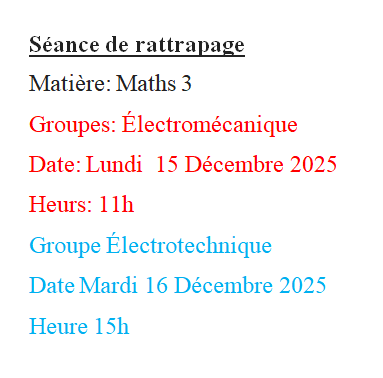 Nous informons les étudiants 2eme ST le groupe ELM qu’une séance de rattrapage TD MNA est programme