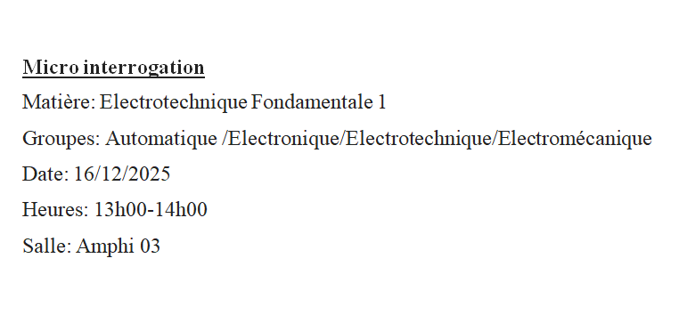 Micro interrogation Electrotechnique Fondamentale 1 (Auto - ELN - ELT - ELM)
