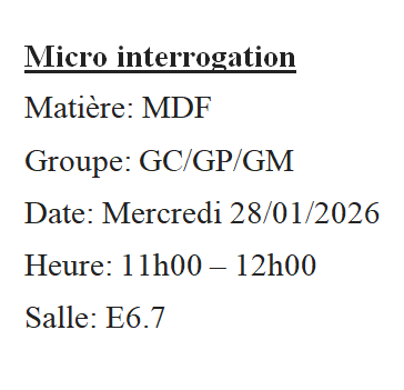 Nous informons les étudiants 2eme ST les groupes GC1-GC2-HYD-TP-GM-ELM  Micro interrogation RDM est programme