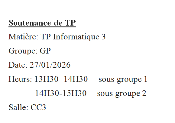 Nous informons les étudiants 2eme ST les groupes GP1/GP2 du suit :