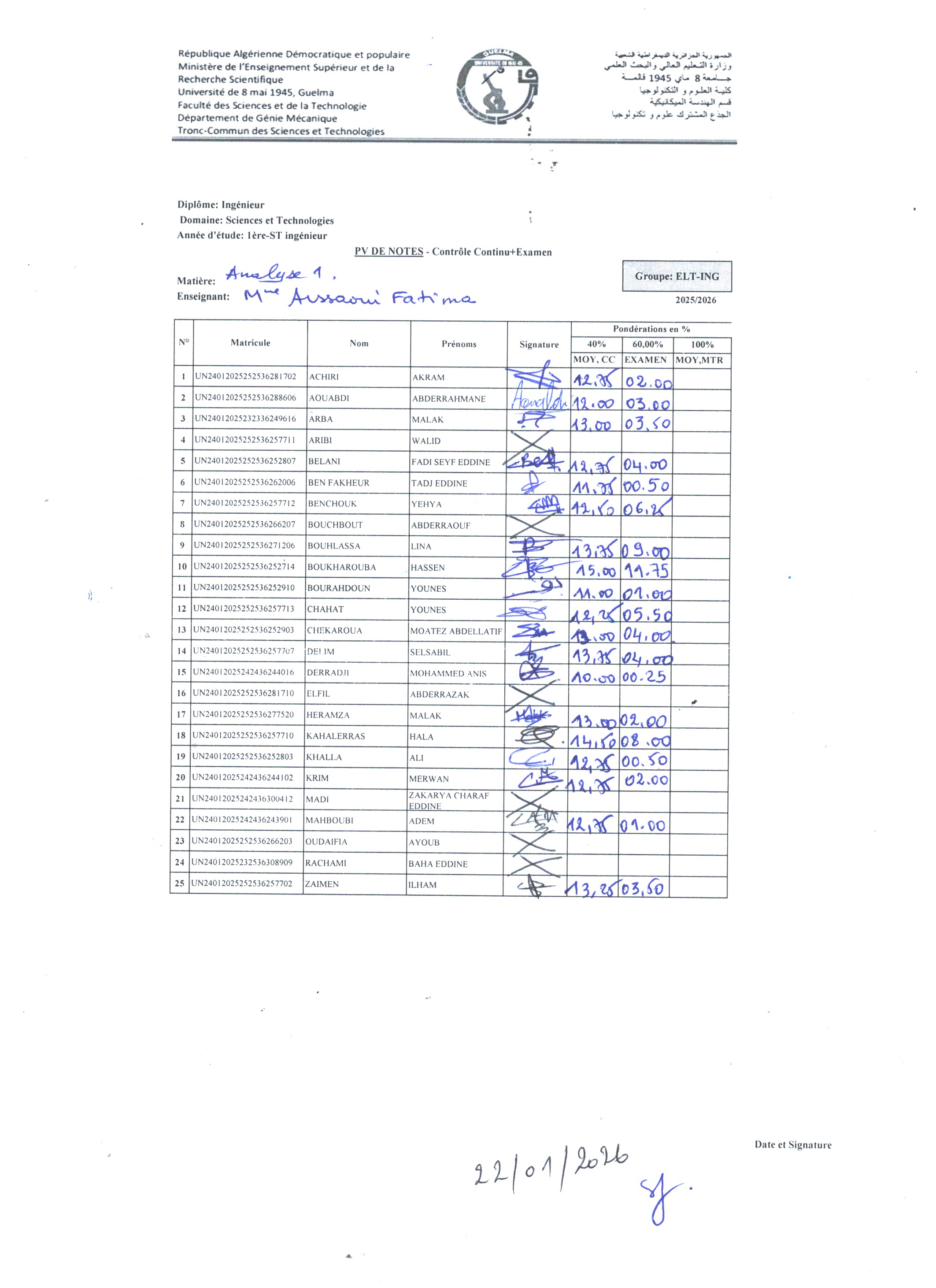 PV de notes rattrappage S1 -