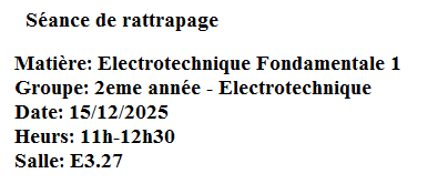 Séance de rattrapage Etrotechnique fondamentale 1-Filière ELT